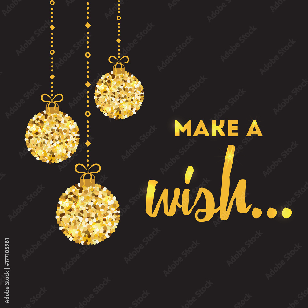 Vector Inspirational Quote Make A Wish Design Banner Decorated Sparkle Golden Christmas Balls Stock Vector Adobe Stock